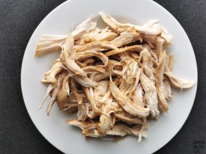 Once cooked, let it cool and shred the chicken with your hands, add the cooking juice to add juiciness and flavor.