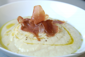 2. Si quieres enriquecer el plato puedes añadir un poco de jamón serrano o ibérico, unos picatostes o si lo prefieres unas gambas cocidas y peladas o unas almejas en conserva, hay muchas opciones para dar un toque especial al resultado final.