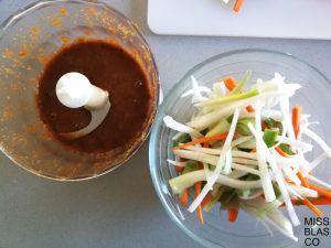 - 4 cda salsa de soja (en la receta original se suele usar salsa de pescado coreana, pero si quieres una receta vegana, usa la de soja)