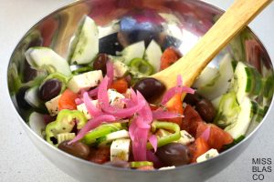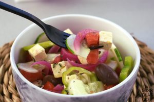 Greek salad is fresh and is the perfect side dish for a barbecue with friends.