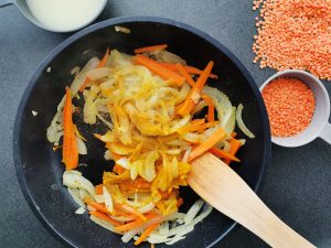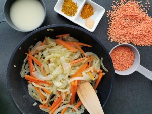 I recently explained to you in this post, how to make a red lentil stir-fry with leek and some spices, today I bring you a very similar recipe, but with a few more ingredients.