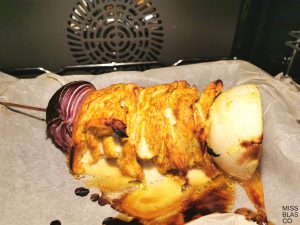 - Pon el pincho o pinchos en el horno a 180ºC, (está bien hacer varios y aprovechar el calor del horno y todo el trabajo para tener sobras durante los días siguientes). Tardará entre 35 y 40 minutos en hacerse, pero esto es aproximado debes vigilar que no se queme y no quede demasiado seco.